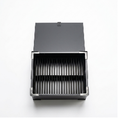 · Three fixed-position divider layers — each die-cut to create individual cells matching the module footprint, each layer pinned to the box base to prevent any shift