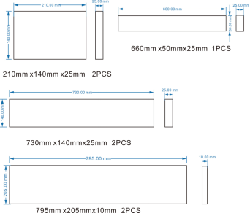 ·   - 2 × long side walls (730 × 140 × 25 mm) for lateral protection