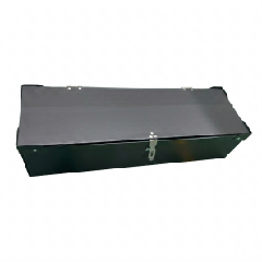 · Hinged lid with latch, dual carry handles, four corner reinforcements